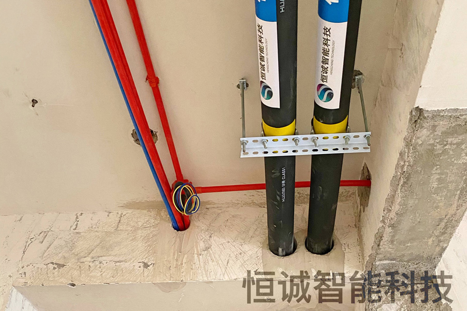 本套獨棟別墅有較大的花園且地質條件適合打井。因此采用了綠色節能的地源熱泵系統。空調采用風機盤管制冷、地暖盤管制熱。